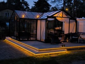 Kasvuhoone terrassil, valgustusega